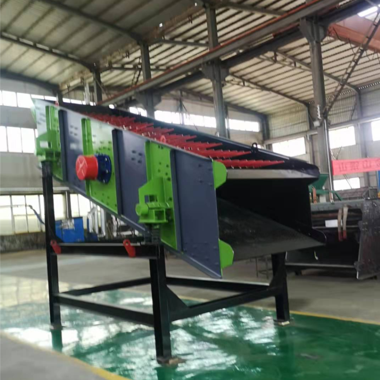 棒條振動篩由激振器產(chǎn)生的激振力通過篩箱傳遞給篩箱內(nèi)的篩面上,因激振器產(chǎn)生激振動力為縱向力,迫使篩箱帶動篩網(wǎng)面作縱向前后位移。在一定條件下,篩網(wǎng)面上的物料因受激振力作用而被向前拋起,落下時小于篩孔的物料則透篩而落到下層,物料在篩網(wǎng)面上的運動軌跡為拋物運動,由于這樣周而復始的物料運動,從而完成物料篩分作業(yè)。